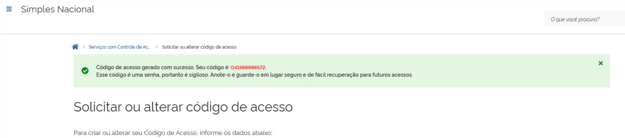O que é o código de acesso ao Simples Nacional?