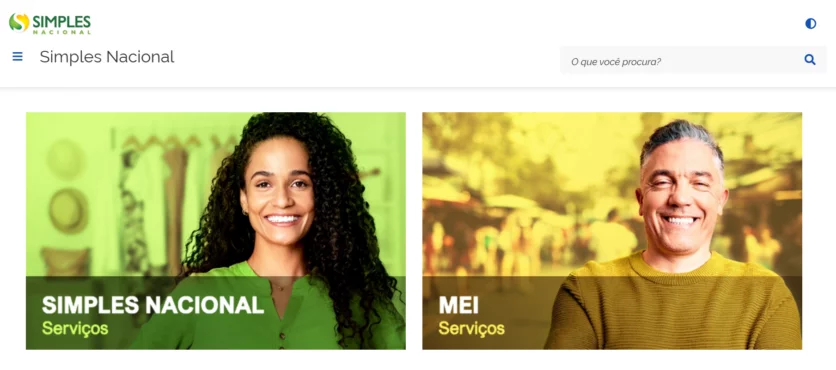 Na página inicial do site do Simples Nacional, clique na opção “Simples Nacional Serviços”.