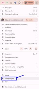 Em seguida, selecione a opção “Configurações” no menu que aparece.
